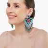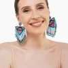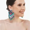 Crafted in a harmonious palette of sky blue, teal, peach, green, and black, these earrings exude an aura of tranquility and protection.